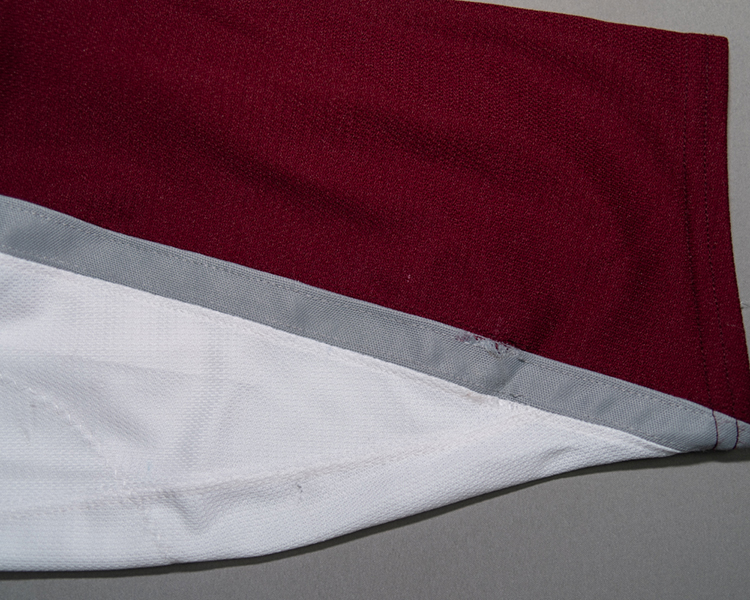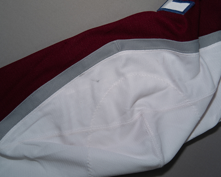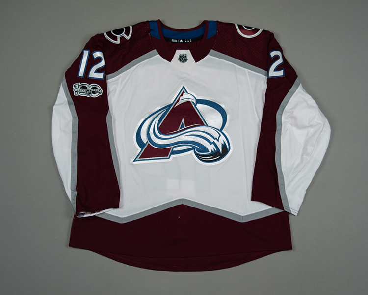 Debut road set of the Adidas "ADIZERO" jerseys. From the first set of road jerseys, worn from September 23 to December 12. This jersey shows light wear overall, with a few black marks on the lower left sleeve, some damage to the piping on the lower right sleeve, and a few random small tears in both lower sleeves. The NHL Centennial patch was added to the right sleeve at the start of 2017 and carried over to the 2017-2018 season on the first set of jerseys. Patrik Nemeth played in 10 of the 13 regular season games this set was worn, plus 3 preseason games. The jersey is accompanied by the Avalanche COA.